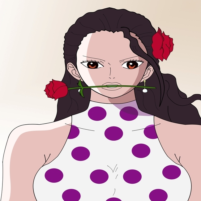 This is a picture of Viola, a fictional character, a beautiful girl for the sake of selflessness in the manga One Piece. Viola is a slim, endowed and olive-skinned woman of medium height. She wore her long, slightly wavy dark brown hair pulled back and held in place by a rose, with a lock of hair hanging loose on the left side of her face.